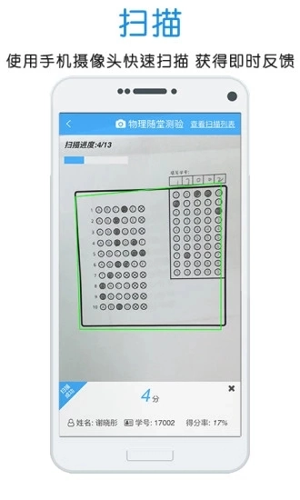 2、手机迅速扫描答题卡,一键导出测验汇报数据。