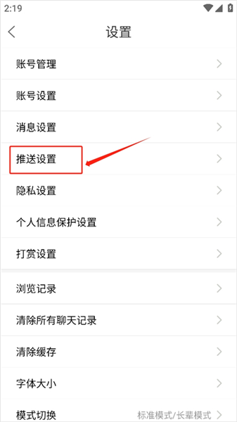 4、在“推送设置”页面,用户就能开启这个免打扰按钮。