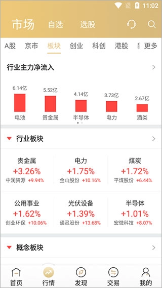 5、选择市场,用户可以选择关注的板块,包括a股,京市,创业,港股等等。