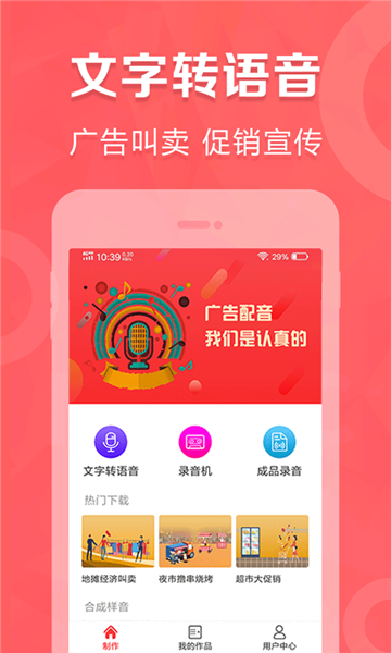 广告叫卖录音,是合肥名阳信息技术有限公司专为广告宣传用户精心打造的一款录音软件。它能让用户省力不少,宣传变得更加便捷高效,轻松收获超强的宣传效果! 这款软件功能十分强大,支持用户自行编辑文字、亲自录音,还能自己配音。要是您觉得自己配音不太理想,软件内海量专业配音主播随时为您服务,无论您钟情何种声音,都能在此寻得。 它的适用场景极为广泛,无论是各类卖场,还是地摊的叫卖、打折促销活动,亦或是厂家直销、企业宣传找人,甚至校园的喇叭广告,统统不在话下。有需求的朋友们,赶紧来体验一番吧!