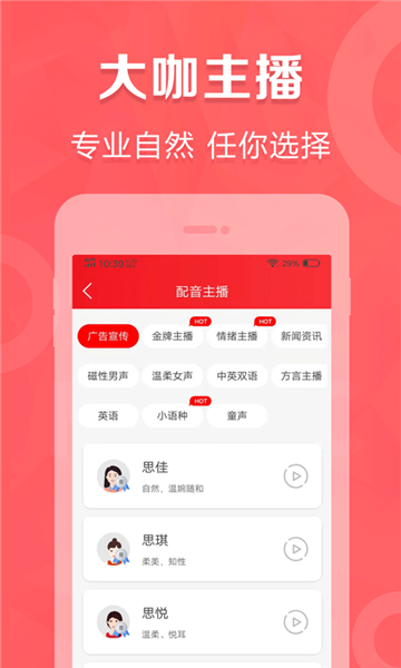 1操作简便,可自由切换中文与英文,还有多种发音人可供挑选。