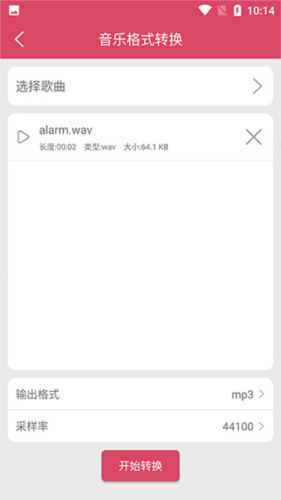 支持MP3、AAC、AMR等主流格式音频之间的格式转换。