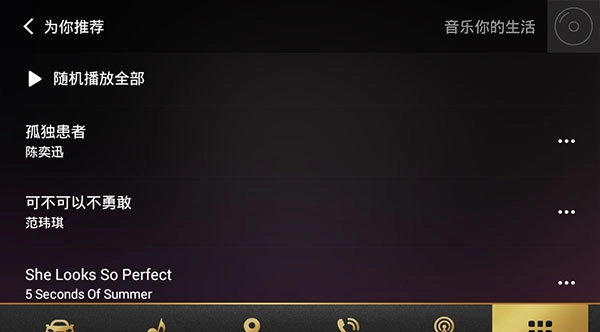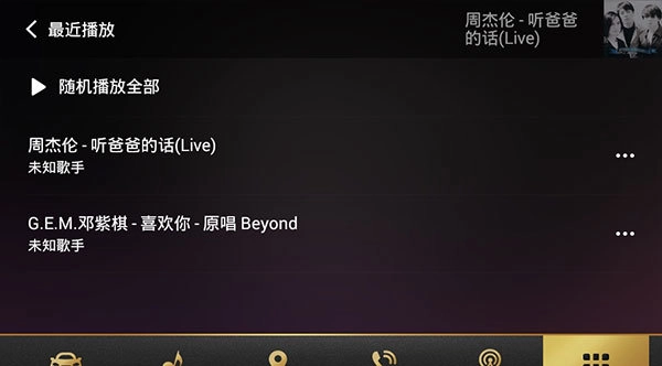 4、首页—最近播放,是最近播放过的音乐目录,当您想再继续听这些音乐时,这个列表就显得非常便捷。