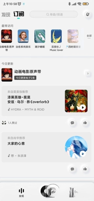 3、点击订阅,可以查看刚才你所加入的频道的音乐