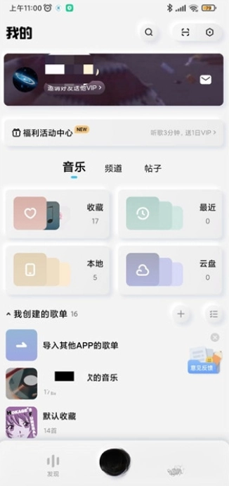 4、点击我的,可以查看个人信息,查看音乐收藏