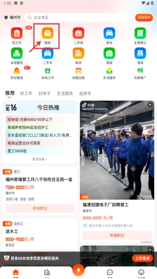 1、打开生活服务类应用,点击租房分类选项,进入租房功能页面。