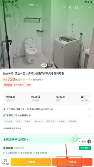 4、在房源详情页,点击打电话按钮,联系房东咨询租房相关事宜。