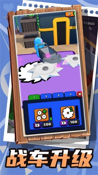 3、在设备升级界面,选择锯片、锯质量等升级项,提升工具性能,助力高效割草与资源积累。