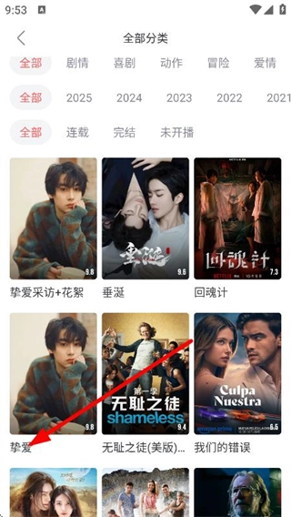 3、在全部分类页面,选择感兴趣的影视,进入该影视播放页面。