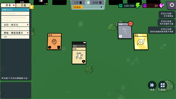 2. 能够获取大量卡牌,像村民、木材、岩石之类的。
