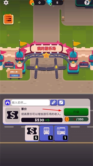 2、升级门票价格,提高游乐场收入,为设施升级和新游乐项目解锁积累资金。