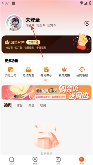 1、进入风芒,在首页点击底部我的,进入个人页面。
