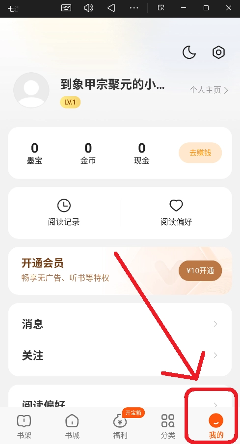 去赚钱:点击进入任务中心,通过阅读、开宝箱等方式赚取金币。