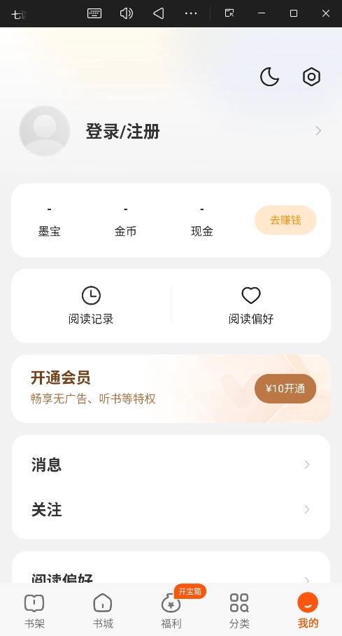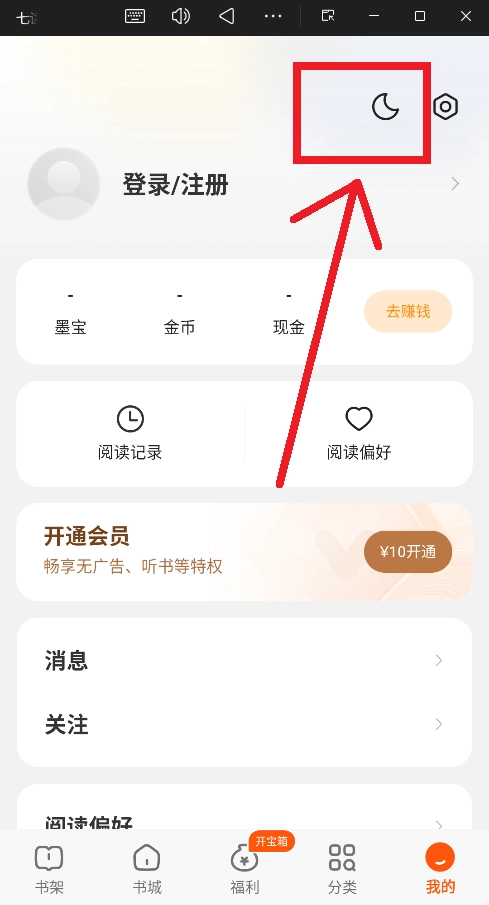 开通会员:支付¥10开通会员,享受、听书等特权。
