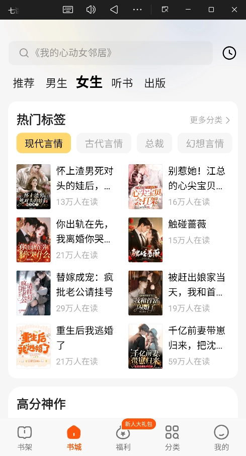 热门标签:如“现代言情”、“古代言情”等,快速找到喜欢的小说类型。