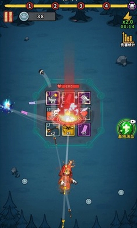 2、当道长经过格子时,会依据格子内放置的小卡牌,触发不同的攻击。