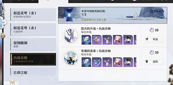 天赋升级需要的周本材料,铁道周本叫历战余响。周本会提供遗器,天赋素材,光锥,摩拉,具体获得什么当然还是得看运气了。