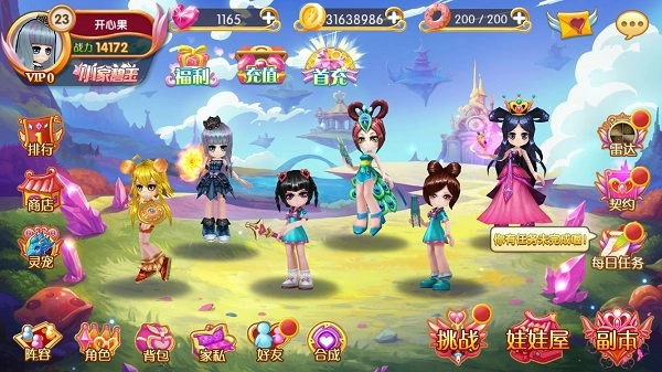 【娃娃相伴 奇妙仙境】与罗丽、茉莉、亮彩、蓝孔雀、白光莹、黑香菱签订契约,伴你一同成长!可爱漂亮的娃娃们不仅可以修炼和表演,还可以通过挑战专属于叶罗丽仙子的仙境回忆获得各种高级的套装!