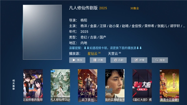 3、任意选择一部喜欢的电视剧播放,这里小编以“凡人修仙传剧版”为例。