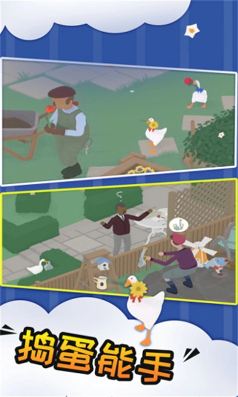 1. 充满荒诞感的闹剧式游戏,玩家在游戏进程里操控一只鹅去戏弄路人,由此收获欢乐。