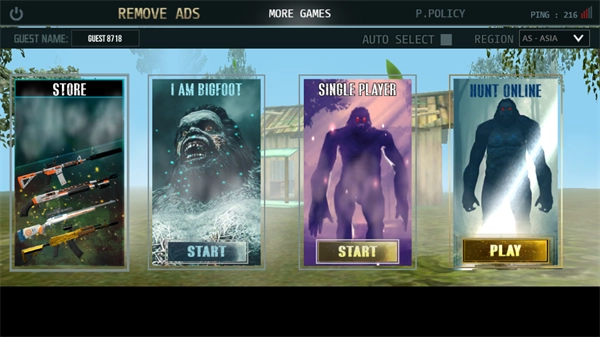 大脚怪狩猎多人联机版,是一款基于经典都市传说大脚怪打造的第一人称轻度恐怖射击游戏。在游戏中,你将踏上捕猎大脚怪的征程。这些大脚怪速度奇快、肌力超强,你得在阴森恐怖的森林中展开探索。游戏里,各类武器装备会为你提供辅助,还有丰富多样且特色十足的挑战模式,你能够合理设置,凭借自身操作实现逆转。使用陷阱道具、威力强大的枪械,与朋友携手合作战斗,把这些奇异的怪物统统抓捕出去研究。运用各种充满心机的陷阱对付大脚怪,为完成任务,充分利用各种道具与资源,练就百发百中的枪法!