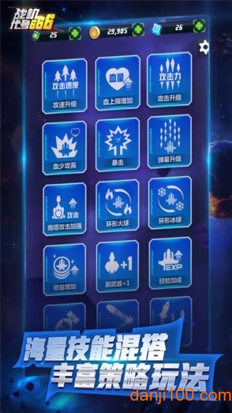 7、DIY你的专属战机,27种技能随心搭配,6种炮塔任意组合,百种弹幕终极形态,辅助主机输出,爆发不一样的战斗效果。