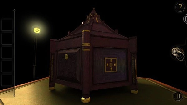 18、将扳手插入右下方的孔里,摇动扳手,圆形的片即将散开,这时候呈现出一个木板,用目镜观察得到一个图纹(类似拼图,跟第二章类似,这里无法给出图片,玩家稍微摸索下即可拼出图形)