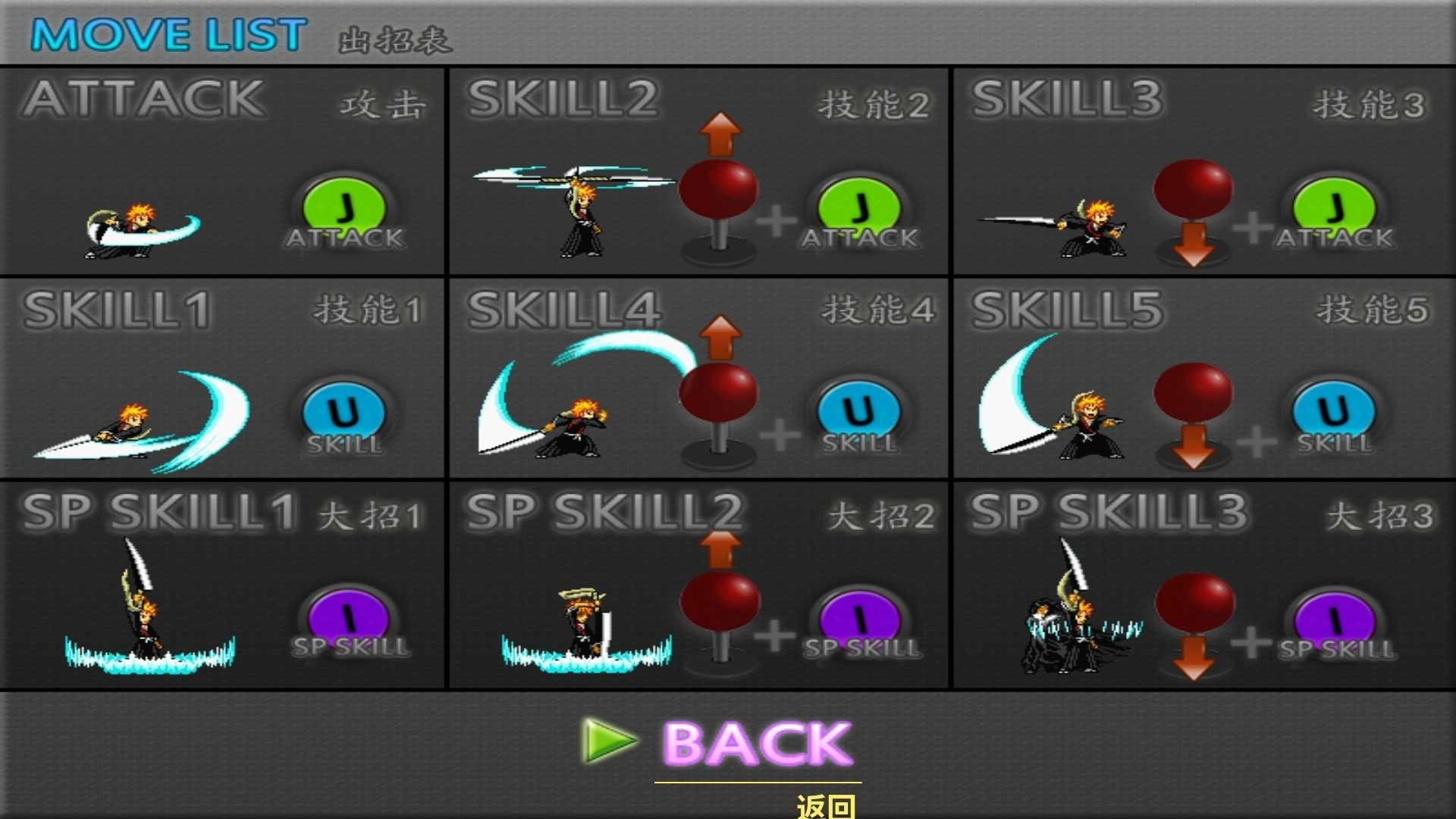 7、点击下方暂停按钮还可以查看角色的出招表。