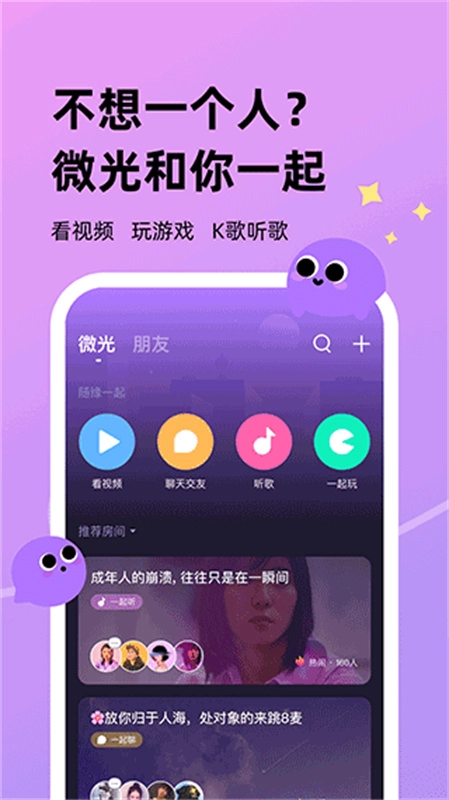 微光,一款超有趣的休闲交友聊天看视频软件。在这软件里,你能体验一同看视频、听歌、玩游戏,还有聊天社交等多样社交功能。它支持多种登录和注册方式,首页顶端还能横铺观看视频。在微光,你可以和游戏伙伴或聊天搭子创建房间,来一场赛博聚会,一起看各类电影,玩不同游戏,即便身处异地,也能畅快玩耍。微光还有类似 K 歌和私人影院的功能,助你以最佳状态与好友相聚,就算线下不能碰面,也能用软件实现云相聚。