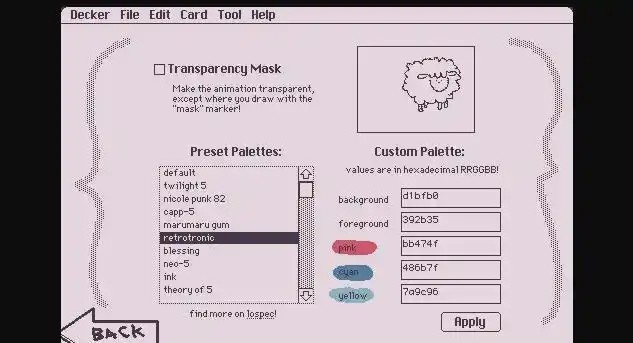 3、进入上色环节,第一步要选择画笔工具,此工具具备红、蓝、黄三种基础颜色。要是想调整为其他颜色,仅需点击上方的“options”来挑选。而左侧的“Preset Palettes”则提供预设的颜色效果,包含前景与背景的色调挑选。