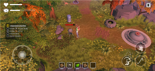 2、破坏物品和狩猎动物可以获得食材,根据找到的食谱制作食物恢复生命值。