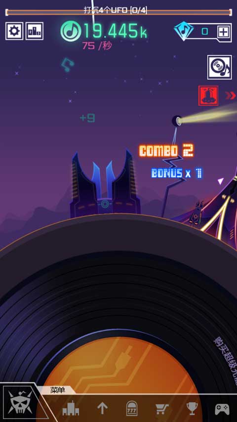 当节奏响起,一开始要多使用单指在音符盘上连续点击。同时,还可以借助身体的感官去摸索出一个间隙点。关键在于,要尽可能多地收集金币,如此在后期才能够让基地实现升级。