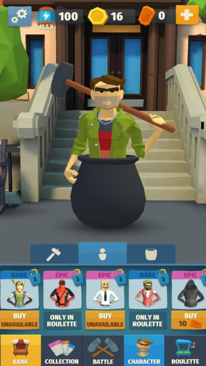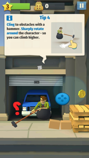 2、操控锤子发力:点击屏幕控制锤子砸向地面或障碍,借助反作用力推动不倒翁式角色向上攀登。