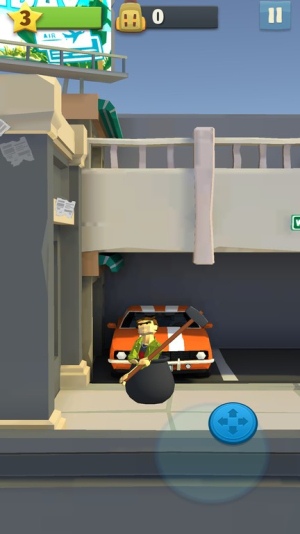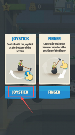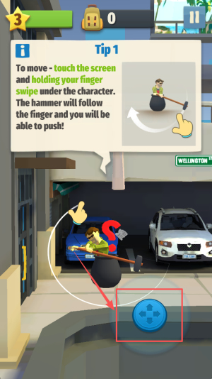 2、接着,用屏幕下方的摇杆(JOYSTICK)拖动控制角色移动,熟悉手指跟锤子的同步方式。