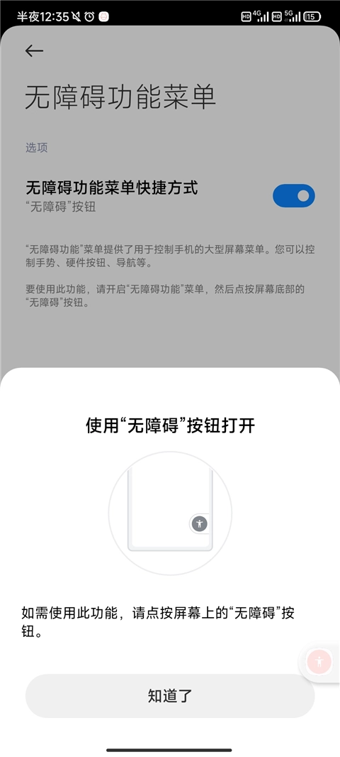 4、点击屏幕上的无障碍按钮就可以了。