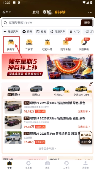 2. 在商城页面,找到并点击“买新车”分类,随后即可进入新车列表页面。
