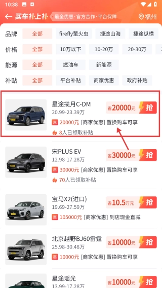 3、在新车列表里,选择星途揽月C-DM条目,进入车型详情页。