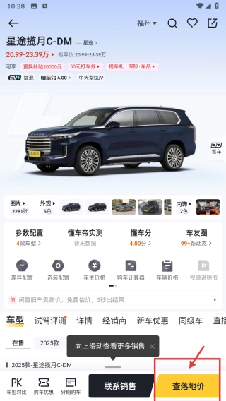 4、于车型详情页面,点击“查看落地价”按钮,以知悉该车的落地价格相关信息。