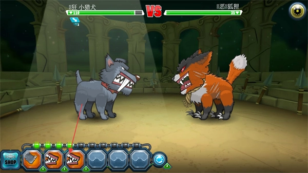 1. 驱使疯狂小猎犬与凶恶狐狸于竞技场展开对战,密切留意对手状态,伺机发起攻击。