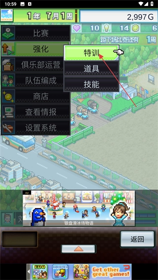 1. 点击右下角的菜单,从中选择“强化”选项,便能通过对选手展开特训,亦或是使用道具提升技能等途径,来增强选手的实力。