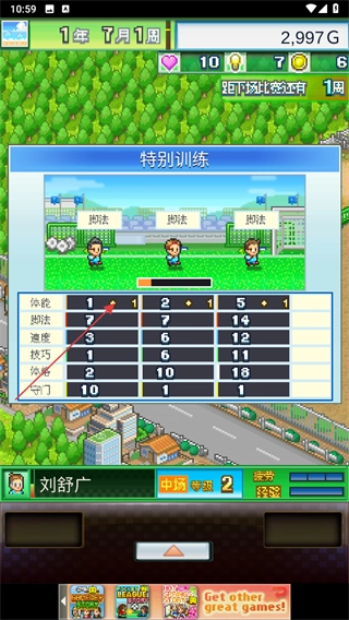 3、训练过程中会不断随机加强选手的各项能力,进度条满则训练结束。
