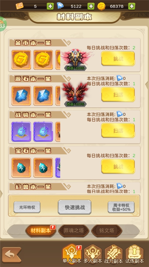 5、还有多种副本模式,同样挑战可以获取相应资源