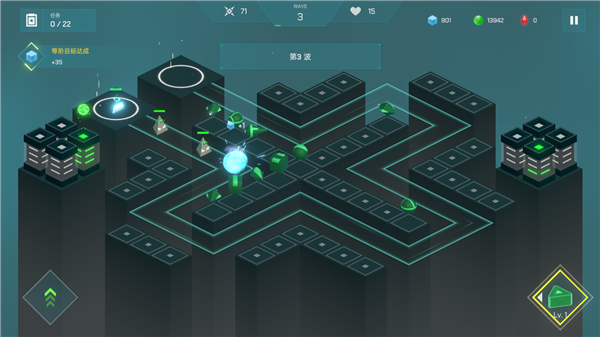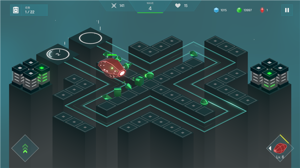 1. 在各个点位修建炮台,要是钻石数量不足,就对旁边的能量站进行升级,持续提升你的炮台等级。