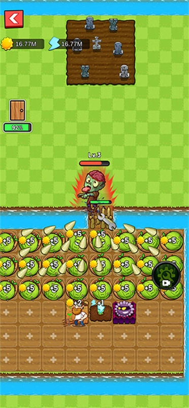 4、游戏里具备多种功能,像攻击、赚钱、产生能量、恢复血液等,且针对这些功能都设置了各类作物防御塔。