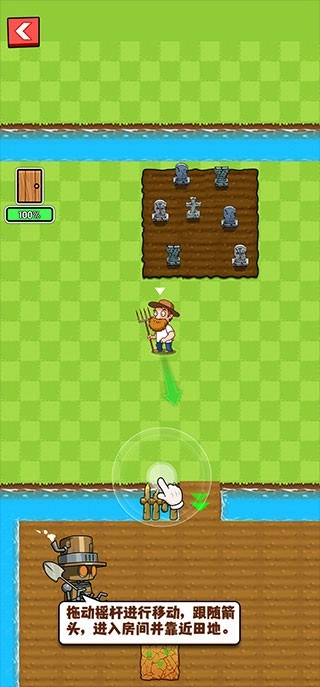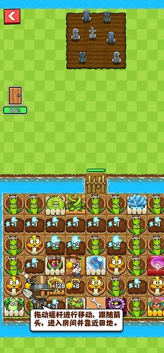 4、进入关卡后,需要拖动屏幕中心的隐形轮盘操控农夫角色进入农田,种植阳光。