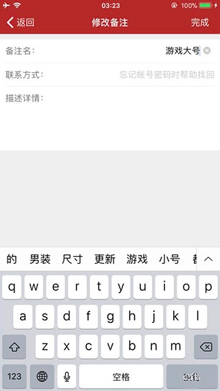 5、在备注中,我们可填写该账号信息的相关内容,如此一来,有助于我们记住这个账号的用途。