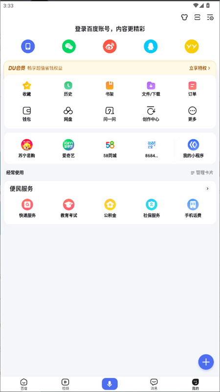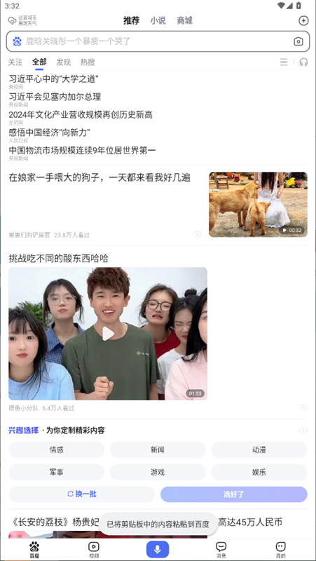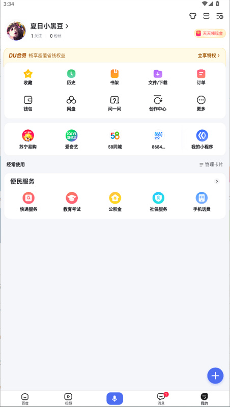 首页底部快速进入视频频道,海量明星娱乐、搞笑段子、经典剧集视频,还能拍小视频记录身边新鲜事,简单操作能拍又能看。