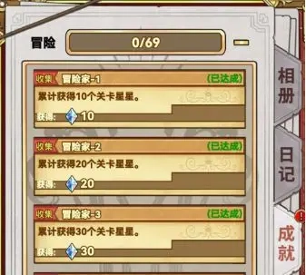舍间→回想→成就→(冒险、养成、收集、竞技场、账号、彩蛋)