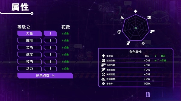 建议:根据武器类型选择属性(如近战武器侧重力量,远程武器侧重敏捷)。