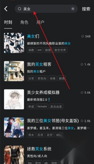 4、还可以在搜索框输入关键字查找角色